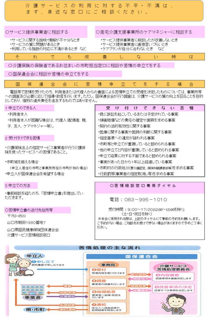 ※書類を提出される場合は、事前に「介護サービス苦情相談窓口」へ御連絡ください。